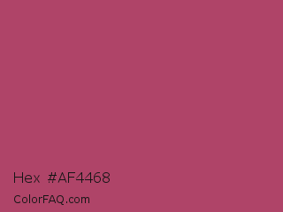 Hex #af4468 Color is a normal rose color and the nearest color is Deep Blush #b44668. Hex code #af4468 and RGB value is rgb(175,68,104). In RGB color space, this color is composed of 69% red, 27% green, 41% blue, In CMYK color space, this color is composed of 0% cyan, 61% magenta, 41% yellow , 31% black , In HSL color space, this color has a hue angle of 340° , 44% saturation and 48% lightness.