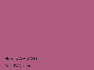Hex #af5c80 Color is a normal rose color and the nearest color is Tapestry #b05e81. Hex code #af5c80 and RGB value is rgb(175,92,128). In RGB color space, this color is composed of 69% red, 36% green, 50% blue, In CMYK color space, this color is composed of 0% cyan, 47% magenta, 27% yellow , 31% black , In HSL color space, this color has a hue angle of 334° , 34% saturation and 52% lightness.