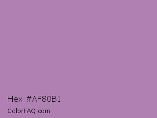 Hex #af80b1 Color is a normal magenta color and the nearest color is Opera Mauve #b784a7. Hex code #af80b1 and RGB value is rgb(175,128,177). In RGB color space, this color is composed of 69% red, 50% green, 69% blue, In CMYK color space, this color is composed of 1% cyan, 28% magenta, 0% yellow , 31% black , In HSL color space, this color has a hue angle of 298° , 24% saturation and 60% lightness.