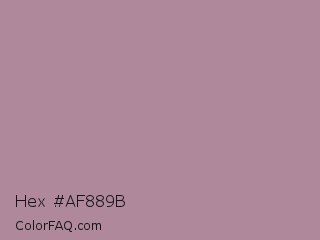 Hex #af889b Color is a light rose color and the nearest color is Bouquet #ae809e. Hex code #af889b and RGB value is rgb(175,136,155). In RGB color space, this color is composed of 69% red, 53% green, 61% blue, In CMYK color space, this color is composed of 0% cyan, 22% magenta, 11% yellow , 31% black , In HSL color space, this color has a hue angle of 331° , 20% saturation and 61% lightness.