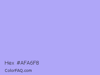 Hex #afa6f8 Color is a very light indigo color and the nearest color is Biloba Flower #b2a1ea. Hex code #afa6f8 and RGB value is rgb(175,166,248). In RGB color space, this color is composed of 69% red, 65% green, 97% blue, In CMYK color space, this color is composed of 29% cyan, 33% magenta, 0% yellow , 3% black , In HSL color space, this color has a hue angle of 247° , 85% saturation and 81% lightness.