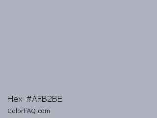 Hex #afb2be Color is a light blue color and the nearest color is Bombay #afb1b8. Hex code #afb2be and RGB value is rgb(175,178,190). In RGB color space, this color is composed of 69% red, 70% green, 75% blue, In CMYK color space, this color is composed of 8% cyan, 6% magenta, 0% yellow , 25% black , In HSL color space, this color has a hue angle of 228° , 10% saturation and 72% lightness.