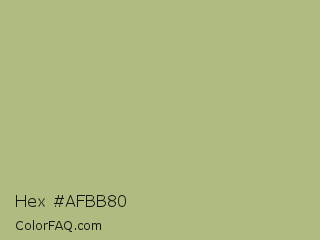 Hex #afbb80 Color is a light lime color and the nearest color is Swamp Green #acb78e. Hex code #afbb80 and RGB value is rgb(175,187,128). In RGB color space, this color is composed of 69% red, 73% green, 50% blue, In CMYK color space, this color is composed of 6% cyan, 0% magenta, 32% yellow , 27% black , In HSL color space, this color has a hue angle of 72° , 30% saturation and 62% lightness.