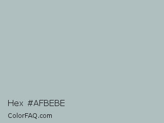 Hex #afbebe Color is a light cyan color and the nearest color is Tower Gray #a9bdbf. Hex code #afbebe and RGB value is rgb(175,190,190). In RGB color space, this color is composed of 69% red, 75% green, 75% blue, In CMYK color space, this color is composed of 8% cyan, 0% magenta, 0% yellow , 25% black , In HSL color space, this color has a hue angle of 180° , 10% saturation and 72% lightness.