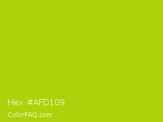 Hex #afd109 Color is a normal yellow color and the nearest color is Vivid Lime Green #a6d608. Hex code #afd109 and RGB value is rgb(175,209,9). In RGB color space, this color is composed of 69% red, 82% green, 4% blue, In CMYK color space, this color is composed of 16% cyan, 0% magenta, 96% yellow , 18% black , In HSL color space, this color has a hue angle of 70° , 92% saturation and 43% lightness.