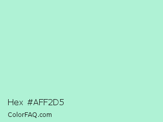 Hex #aff2d5 Color is a very light green color and the nearest color is Magic Mint #aaf0d1. Hex code #aff2d5 and RGB value is rgb(175,242,213). In RGB color space, this color is composed of 69% red, 95% green, 84% blue, In CMYK color space, this color is composed of 28% cyan, 0% magenta, 12% yellow , 5% black , In HSL color space, this color has a hue angle of 154° , 72% saturation and 82% lightness.