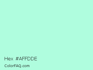 Hex #affdde Color is a very light green color and the nearest color is Ice Cold #b1f4e7. Hex code #affdde and RGB value is rgb(175,253,222). In RGB color space, this color is composed of 69% red, 99% green, 87% blue, In CMYK color space, this color is composed of 31% cyan, 0% magenta, 12% yellow , 1% black , In HSL color space, this color has a hue angle of 156° , 95% saturation and 84% lightness.