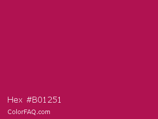 Hex #b01251 Color is a normal rose color and the nearest color is French Wine #ac1e44. Hex code #b01251 and RGB value is rgb(176,18,81). In RGB color space, this color is composed of 69% red, 7% green, 32% blue, In CMYK color space, this color is composed of 0% cyan, 90% magenta, 54% yellow , 31% black , In HSL color space, this color has a hue angle of 336° , 81% saturation and 38% lightness.