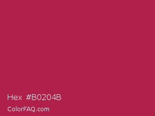 Hex #b0204b Color is a normal rose color and the nearest color is French Wine #ac1e44. Hex code #b0204b and RGB value is rgb(176,32,75). In RGB color space, this color is composed of 69% red, 13% green, 29% blue, In CMYK color space, this color is composed of 0% cyan, 82% magenta, 57% yellow , 31% black , In HSL color space, this color has a hue angle of 342° , 69% saturation and 41% lightness.