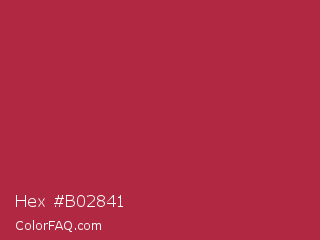Hex #b02841 Color is a normal red color and the nearest color is Deep Carmine #a9203e. Hex code #b02841 and RGB value is rgb(176,40,65). In RGB color space, this color is composed of 69% red, 16% green, 25% blue, In CMYK color space, this color is composed of 0% cyan, 77% magenta, 63% yellow , 31% black , In HSL color space, this color has a hue angle of 349° , 63% saturation and 42% lightness.