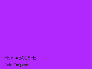 Hex #b028fe Color is a normal purple color and the nearest color is Veronica #a020f0. Hex code #b028fe and RGB value is rgb(176,40,254). In RGB color space, this color is composed of 69% red, 16% green, 100% blue, In CMYK color space, this color is composed of 31% cyan, 84% magenta, 0% yellow , 0% black , In HSL color space, this color has a hue angle of 278° , 99% saturation and 58% lightness.