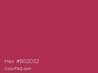 Hex #b02d52 Color is a normal rose color and the nearest color is Amaranth Purple #ab274f. Hex code #b02d52 and RGB value is rgb(176,45,82). In RGB color space, this color is composed of 69% red, 18% green, 32% blue, In CMYK color space, this color is composed of 0% cyan, 74% magenta, 53% yellow , 31% black , In HSL color space, this color has a hue angle of 343° , 59% saturation and 43% lightness.
