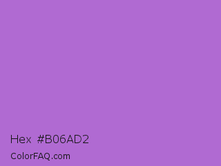 Hex #b06ad2 Color is a light purple color and the nearest color is Rich Lilac #b666d2. Hex code #b06ad2 and RGB value is rgb(176,106,210). In RGB color space, this color is composed of 69% red, 42% green, 82% blue, In CMYK color space, this color is composed of 16% cyan, 50% magenta, 0% yellow , 18% black , In HSL color space, this color has a hue angle of 280° , 54% saturation and 62% lightness.