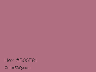 Hex #b06e81 Color is a normal rose color and the nearest color is Turkish Rose #b57281. Hex code #b06e81 and RGB value is rgb(176,110,129). In RGB color space, this color is composed of 69% red, 43% green, 51% blue, In CMYK color space, this color is composed of 0% cyan, 38% magenta, 27% yellow , 31% black , In HSL color space, this color has a hue angle of 343° , 29% saturation and 56% lightness.