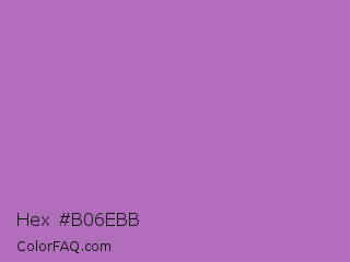 Hex #b06ebb Color is a normal purple color and the nearest color is Rich Lavender #a76bcf. Hex code #b06ebb and RGB value is rgb(176,110,187). In RGB color space, this color is composed of 69% red, 43% green, 73% blue, In CMYK color space, this color is composed of 6% cyan, 41% magenta, 0% yellow , 27% black , In HSL color space, this color has a hue angle of 291° , 36% saturation and 58% lightness.