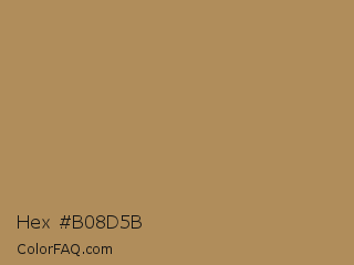 Hex #b08d5b Color is a normal orange color and the nearest color is Muesli #aa8b5b. Hex code #b08d5b and RGB value is rgb(176,141,91). In RGB color space, this color is composed of 69% red, 55% green, 36% blue, In CMYK color space, this color is composed of 0% cyan, 20% magenta, 48% yellow , 31% black , In HSL color space, this color has a hue angle of 35° , 35% saturation and 52% lightness.