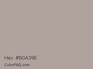 Hex #b0a39e Color is a light orange color and the nearest color is Martini #afa09e. Hex code #b0a39e and RGB value is rgb(176,163,158). In RGB color space, this color is composed of 69% red, 64% green, 62% blue, In CMYK color space, this color is composed of 0% cyan, 7% magenta, 10% yellow , 31% black , In HSL color space, this color has a hue angle of 17° , 10% saturation and 65% lightness.