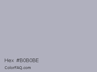 Hex #b0b0be Color is a light blue color and the nearest color is Bombay #afb1b8. Hex code #b0b0be and RGB value is rgb(176,176,190). In RGB color space, this color is composed of 69% red, 69% green, 75% blue, In CMYK color space, this color is composed of 7% cyan, 7% magenta, 0% yellow , 25% black , In HSL color space, this color has a hue angle of 240° , 10% saturation and 72% lightness.