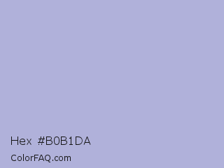 Hex #b0b1da Color is a light blue color and the nearest color is Pigeon Post #afbdd9. Hex code #b0b1da and RGB value is rgb(176,177,218). In RGB color space, this color is composed of 69% red, 69% green, 85% blue, In CMYK color space, this color is composed of 19% cyan, 19% magenta, 0% yellow , 15% black , In HSL color space, this color has a hue angle of 239° , 36% saturation and 77% lightness.