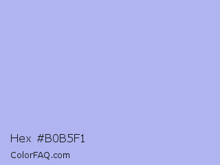 Hex #b0b5f1 Color is a very light blue color and the nearest color is Perano #a9bef2. Hex code #b0b5f1 and RGB value is rgb(176,181,241). In RGB color space, this color is composed of 69% red, 71% green, 95% blue, In CMYK color space, this color is composed of 27% cyan, 25% magenta, 0% yellow , 5% black , In HSL color space, this color has a hue angle of 235° , 70% saturation and 82% lightness.