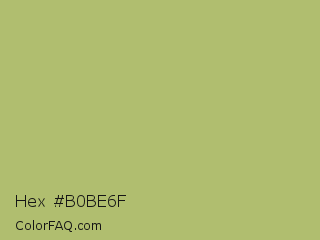 Hex #b0be6f Color is a normal lime color and the nearest color is Wild Willow #b9c46a. Hex code #b0be6f and RGB value is rgb(176,190,111). In RGB color space, this color is composed of 69% red, 75% green, 44% blue, In CMYK color space, this color is composed of 7% cyan, 0% magenta, 42% yellow , 25% black , In HSL color space, this color has a hue angle of 71° , 38% saturation and 59% lightness.