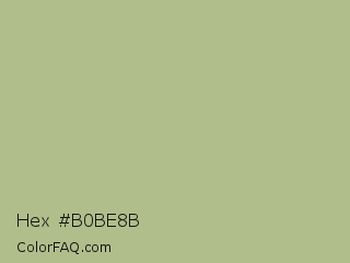 Hex #b0be8b Color is a light lime color and the nearest color is Swamp Green #acb78e. Hex code #b0be8b and RGB value is rgb(176,190,139). In RGB color space, this color is composed of 69% red, 75% green, 55% blue, In CMYK color space, this color is composed of 7% cyan, 0% magenta, 27% yellow , 25% black , In HSL color space, this color has a hue angle of 76° , 28% saturation and 65% lightness.
