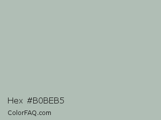 Hex #b0beb5 Color is a light green color and the nearest color is Ash Gray #b2beb5. Hex code #b0beb5 and RGB value is rgb(176,190,181). In RGB color space, this color is composed of 69% red, 75% green, 71% blue, In CMYK color space, this color is composed of 7% cyan, 0% magenta, 5% yellow , 25% black , In HSL color space, this color has a hue angle of 141° , 10% saturation and 72% lightness.
