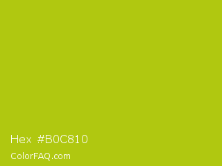 Hex #b0c810 Color is a normal yellow color and the nearest color is La Rioja #b3c110. Hex code #b0c810 and RGB value is rgb(176,200,16). In RGB color space, this color is composed of 69% red, 78% green, 6% blue, In CMYK color space, this color is composed of 12% cyan, 0% magenta, 92% yellow , 22% black , In HSL color space, this color has a hue angle of 68° , 85% saturation and 42% lightness.
