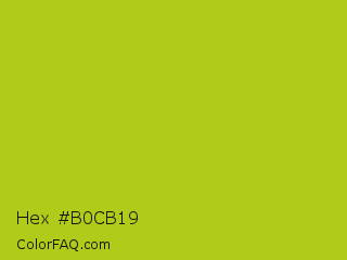 Hex #b0cb19 Color is a normal yellow color and the nearest color is Acid Green #b0bf1a. Hex code #b0cb19 and RGB value is rgb(176,203,25). In RGB color space, this color is composed of 69% red, 80% green, 10% blue, In CMYK color space, this color is composed of 13% cyan, 0% magenta, 88% yellow , 20% black , In HSL color space, this color has a hue angle of 69° , 78% saturation and 45% lightness.