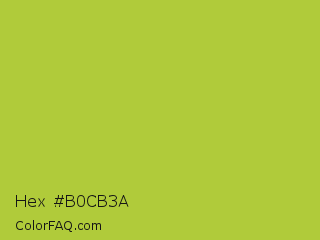 Hex #b0cb3a Color is a normal lime color and the nearest color is Android Green #a4c639. Hex code #b0cb3a and RGB value is rgb(176,203,58). In RGB color space, this color is composed of 69% red, 80% green, 23% blue, In CMYK color space, this color is composed of 13% cyan, 0% magenta, 71% yellow , 20% black , In HSL color space, this color has a hue angle of 71° , 58% saturation and 51% lightness.
