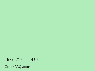 Hex #b0edbb Color is a very light green color and the nearest color is Madang #b7f0be. Hex code #b0edbb and RGB value is rgb(176,237,187). In RGB color space, this color is composed of 69% red, 93% green, 73% blue, In CMYK color space, this color is composed of 26% cyan, 0% magenta, 21% yellow , 7% black , In HSL color space, this color has a hue angle of 131° , 63% saturation and 81% lightness.