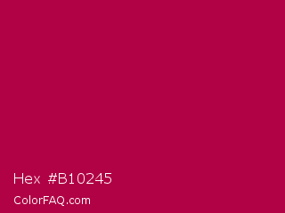 Hex #b10245 Color is a normal rose color and the nearest color is Shiraz #b20931. Hex code #b10245 and RGB value is rgb(177,2,69). In RGB color space, this color is composed of 69% red, 1% green, 27% blue, In CMYK color space, this color is composed of 0% cyan, 99% magenta, 61% yellow , 31% black , In HSL color space, this color has a hue angle of 337° , 98% saturation and 35% lightness.