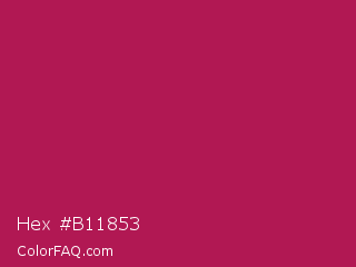 Hex #b11853 Color is a normal rose color and the nearest color is Amaranth Purple #ab274f. Hex code #b11853 and RGB value is rgb(177,24,83). In RGB color space, this color is composed of 69% red, 9% green, 33% blue, In CMYK color space, this color is composed of 0% cyan, 86% magenta, 53% yellow , 31% black , In HSL color space, this color has a hue angle of 337° , 76% saturation and 39% lightness.