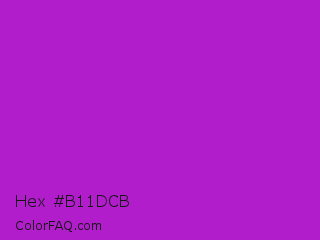 Hex #b11dcb Color is a normal purple color and the nearest color is Vivid Mulberry #b80ce3. Hex code #b11dcb and RGB value is rgb(177,29,203). In RGB color space, this color is composed of 69% red, 11% green, 80% blue, In CMYK color space, this color is composed of 13% cyan, 86% magenta, 0% yellow , 20% black , In HSL color space, this color has a hue angle of 291° , 75% saturation and 45% lightness.