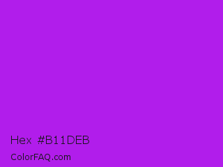 Hex #b11deb Color is a normal purple color and the nearest color is Veronica #a020f0. Hex code #b11deb and RGB value is rgb(177,29,235). In RGB color space, this color is composed of 69% red, 11% green, 92% blue, In CMYK color space, this color is composed of 25% cyan, 88% magenta, 0% yellow , 8% black , In HSL color space, this color has a hue angle of 283° , 84% saturation and 52% lightness.
