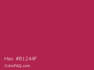 Hex #b1244f Color is a normal rose color and the nearest color is Amaranth Purple #ab274f. Hex code #b1244f and RGB value is rgb(177,36,79). In RGB color space, this color is composed of 69% red, 14% green, 31% blue, In CMYK color space, this color is composed of 0% cyan, 80% magenta, 55% yellow , 31% black , In HSL color space, this color has a hue angle of 342° , 66% saturation and 42% lightness.