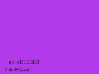 Hex #b13be8 Color is a normal purple color and the nearest color is Veronica #a020f0. Hex code #b13be8 and RGB value is rgb(177,59,232). In RGB color space, this color is composed of 69% red, 23% green, 91% blue, In CMYK color space, this color is composed of 24% cyan, 75% magenta, 0% yellow , 9% black , In HSL color space, this color has a hue angle of 281° , 79% saturation and 57% lightness.