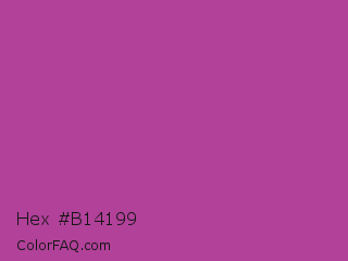 Hex #b14199 Color is a normal magenta color and the nearest color is Byzantine #bd33a4. Hex code #b14199 and RGB value is rgb(177,65,153). In RGB color space, this color is composed of 69% red, 25% green, 60% blue, In CMYK color space, this color is composed of 0% cyan, 63% magenta, 14% yellow , 31% black , In HSL color space, this color has a hue angle of 313° , 46% saturation and 47% lightness.