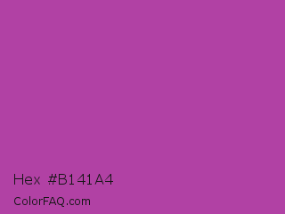 Hex #b141a4 Color is a normal magenta color and the nearest color is Byzantine #bd33a4. Hex code #b141a4 and RGB value is rgb(177,65,164). In RGB color space, this color is composed of 69% red, 25% green, 64% blue, In CMYK color space, this color is composed of 0% cyan, 63% magenta, 7% yellow , 31% black , In HSL color space, this color has a hue angle of 307° , 46% saturation and 47% lightness.