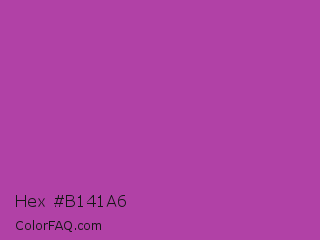 Hex #b141a6 Color is a normal magenta color and the nearest color is Byzantine #bd33a4. Hex code #b141a6 and RGB value is rgb(177,65,166). In RGB color space, this color is composed of 69% red, 25% green, 65% blue, In CMYK color space, this color is composed of 0% cyan, 63% magenta, 6% yellow , 31% black , In HSL color space, this color has a hue angle of 306° , 46% saturation and 47% lightness.
