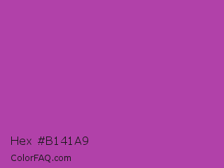 Hex #b141a9 Color is a normal magenta color and the nearest color is Byzantine #bd33a4. Hex code #b141a9 and RGB value is rgb(177,65,169). In RGB color space, this color is composed of 69% red, 25% green, 66% blue, In CMYK color space, this color is composed of 0% cyan, 63% magenta, 5% yellow , 31% black , In HSL color space, this color has a hue angle of 304° , 46% saturation and 47% lightness.