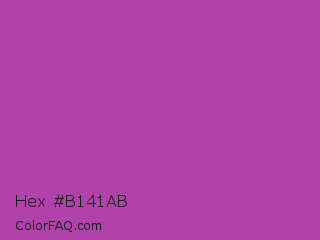 Hex #b141ab Color is a normal magenta color and the nearest color is Byzantine #bd33a4. Hex code #b141ab and RGB value is rgb(177,65,171). In RGB color space, this color is composed of 69% red, 25% green, 67% blue, In CMYK color space, this color is composed of 0% cyan, 63% magenta, 3% yellow , 31% black , In HSL color space, this color has a hue angle of 303° , 46% saturation and 47% lightness.