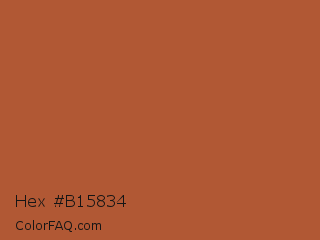 Hex #b15834 Color is a normal orange color and the nearest color is Brown Rust #af593e. Hex code #b15834 and RGB value is rgb(177,88,52). In RGB color space, this color is composed of 69% red, 35% green, 20% blue, In CMYK color space, this color is composed of 0% cyan, 50% magenta, 71% yellow , 31% black , In HSL color space, this color has a hue angle of 17° , 55% saturation and 45% lightness.