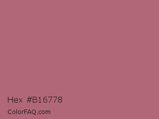 Hex #b16778 Color is a normal red color and the nearest color is Rose Gold #b76e79. Hex code #b16778 and RGB value is rgb(177,103,120). In RGB color space, this color is composed of 69% red, 40% green, 47% blue, In CMYK color space, this color is composed of 0% cyan, 42% magenta, 32% yellow , 31% black , In HSL color space, this color has a hue angle of 346° , 32% saturation and 55% lightness.