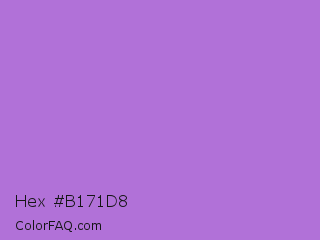 Hex #b171d8 Color is a light purple color and the nearest color is Rich Lilac #b666d2. Hex code #b171d8 and RGB value is rgb(177,113,216). In RGB color space, this color is composed of 69% red, 44% green, 85% blue, In CMYK color space, this color is composed of 18% cyan, 48% magenta, 0% yellow , 15% black , In HSL color space, this color has a hue angle of 277° , 57% saturation and 65% lightness.