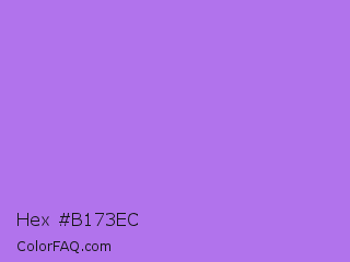 Hex #b173ec Color is a light purple color and the nearest color is Lavender #b57edc. Hex code #b173ec and RGB value is rgb(177,115,236). In RGB color space, this color is composed of 69% red, 45% green, 93% blue, In CMYK color space, this color is composed of 25% cyan, 51% magenta, 0% yellow , 7% black , In HSL color space, this color has a hue angle of 271° , 76% saturation and 69% lightness.