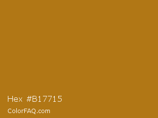 Hex #b17715 Color is a normal orange color and the nearest color is Mandalay #ad781b. Hex code #b17715 and RGB value is rgb(177,119,21). In RGB color space, this color is composed of 69% red, 47% green, 8% blue, In CMYK color space, this color is composed of 0% cyan, 33% magenta, 88% yellow , 31% black , In HSL color space, this color has a hue angle of 38° , 79% saturation and 39% lightness.