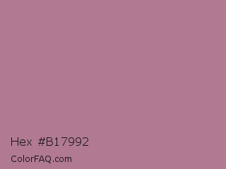 Hex #b17992 Color is a normal rose color and the nearest color is English Lavender #b48395. Hex code #b17992 and RGB value is rgb(177,121,146). In RGB color space, this color is composed of 69% red, 47% green, 57% blue, In CMYK color space, this color is composed of 0% cyan, 32% magenta, 18% yellow , 31% black , In HSL color space, this color has a hue angle of 333° , 26% saturation and 58% lightness.