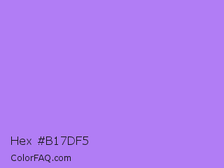 Hex #b17df5 Color is a light violet color and the nearest color is Lavender #b57edc. Hex code #b17df5 and RGB value is rgb(177,125,245). In RGB color space, this color is composed of 69% red, 49% green, 96% blue, In CMYK color space, this color is composed of 28% cyan, 49% magenta, 0% yellow , 4% black , In HSL color space, this color has a hue angle of 266° , 86% saturation and 73% lightness.