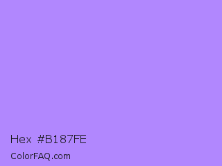 Hex #b187fe Color is a light violet color and the nearest color is Dull Lavender #a899e6. Hex code #b187fe and RGB value is rgb(177,135,254). In RGB color space, this color is composed of 69% red, 53% green, 100% blue, In CMYK color space, this color is composed of 30% cyan, 47% magenta, 0% yellow , 0% black , In HSL color space, this color has a hue angle of 261° , 98% saturation and 76% lightness.
